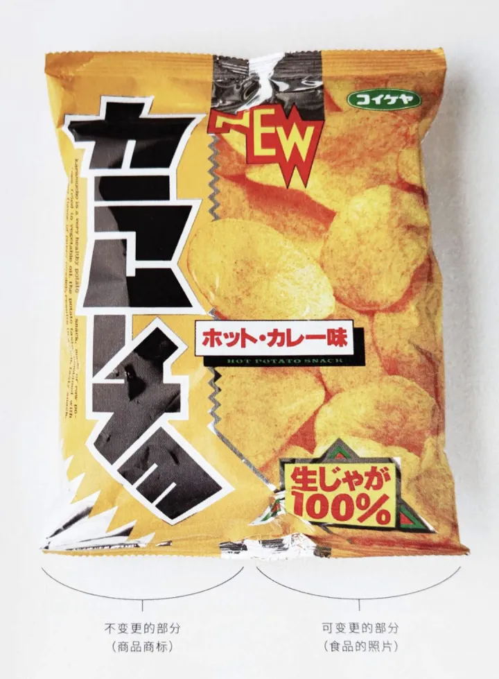 零食包裝袋,這類購買之后轉眼就變成垃圾的物品,該怎么設計呢?有一項常識,那就是“即使物品變成垃圾,仍然會在人們的腦海中留下印象。”往往,這類制品內(nèi)容跟新了,設計也會更著更新,這是一部看不完的歷史。